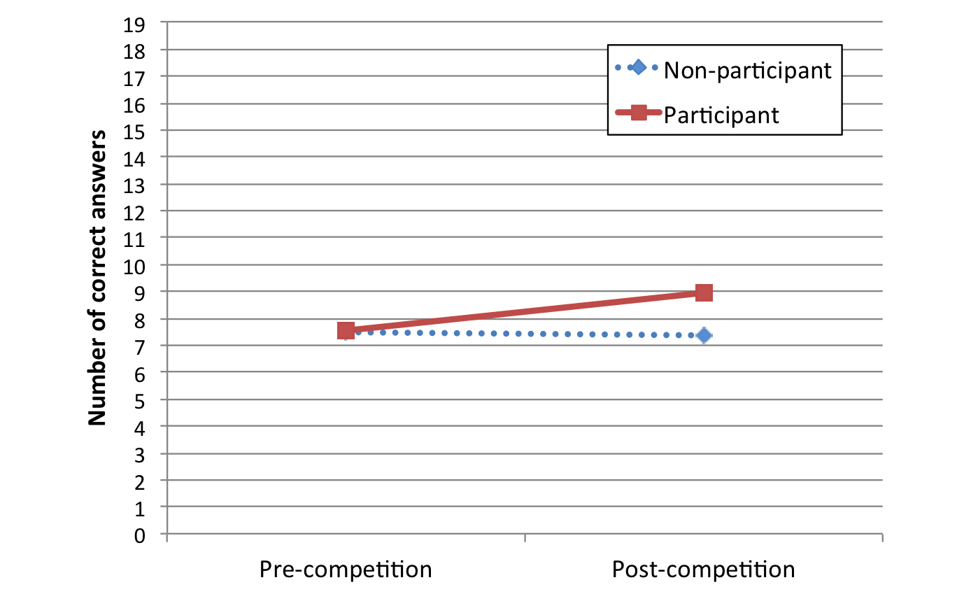 We performed an experiment during the 2011 Kukui Cup competition in which we tested the “energy literacy” of a randomly selected set of students living in the Hale Aloha residence halls before and after the Kukui Cup challenge. We discovered that students who participated increased their energy knowledge compared to students who did not participate (p < 0.059). These findings provide evidence that the Kukui Cup game mechanics succeed in motivating players to learn about energy issues.